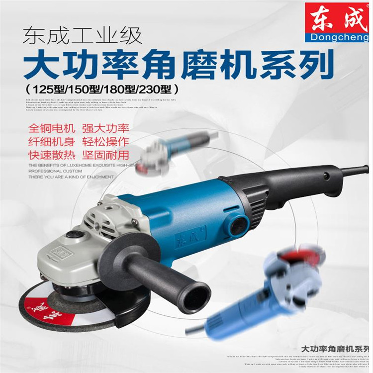 东成角向磨光机属于工业级大功率角磨机,系列包括125型/150型/180型/230型