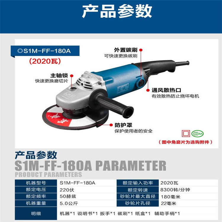 东成角向磨光机S1M-FF-180SH/S1M-FF-230SH打磨除锈抛光机125/150/180/230型