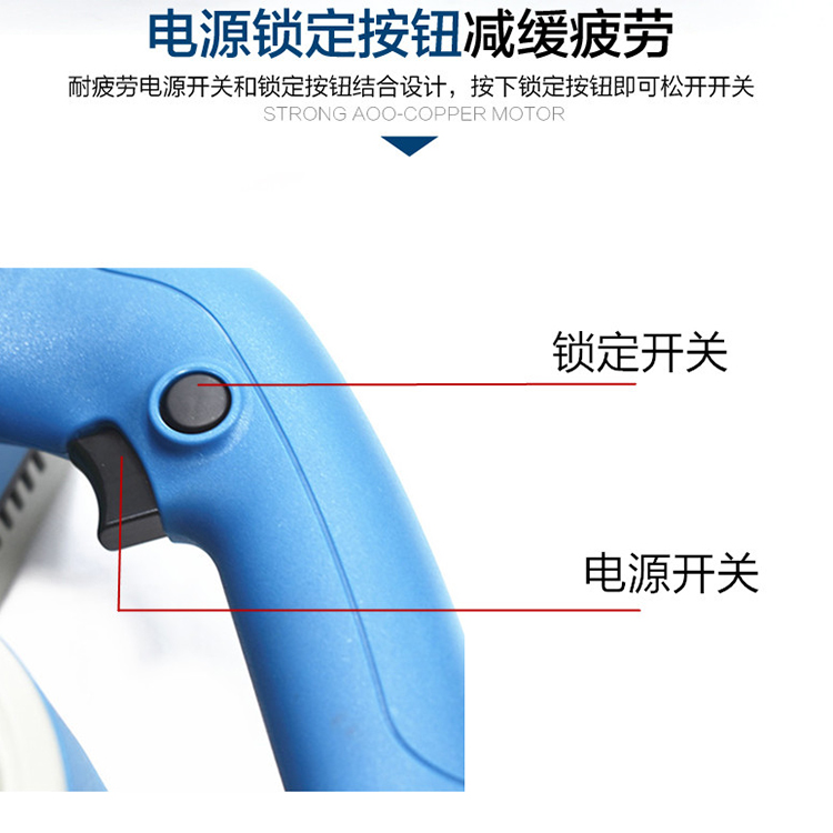 握手柄处大面积包胶有效减震,防滑疲劳外置碳刷,更换方便。
