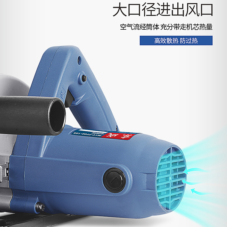 电圆锯大口径进出风口,空气流经筒体,充分带走机芯热量