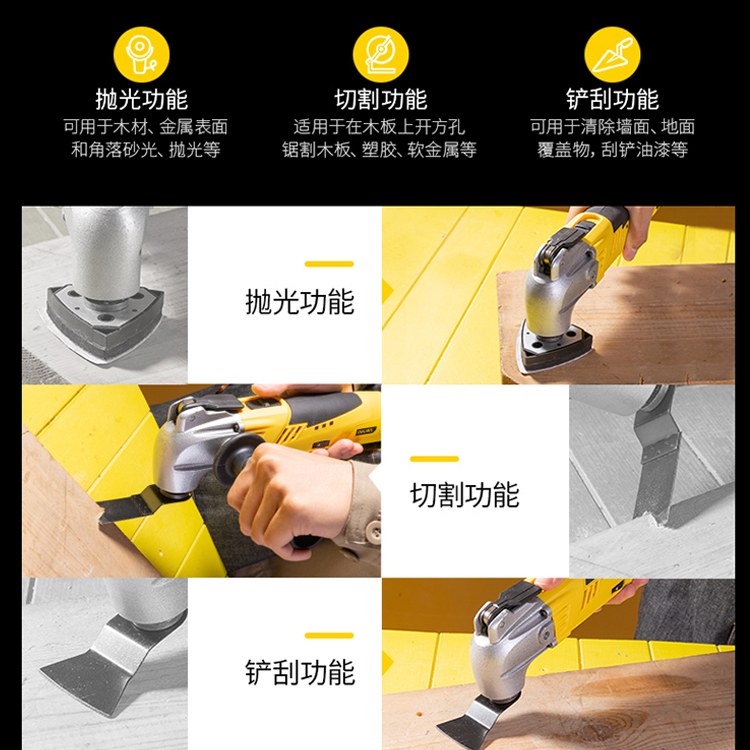 得力万用宝可更换多种工作头进行各种作业活动,多种功能随心操控。
