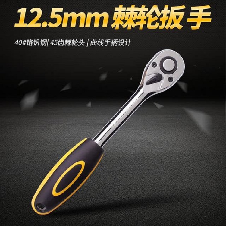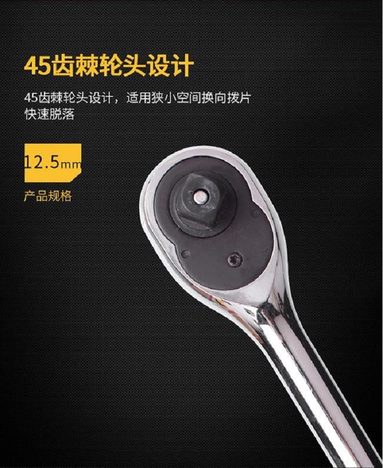 得力deli快速脱落直柄棘轮扳手45T 12.5mm级铬钒钢套筒扳手