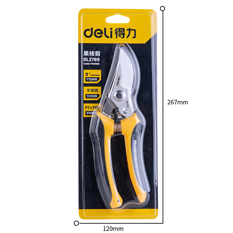 得力工具 DL2789花木不锈钢枝剪刀弯嘴果枝剪,