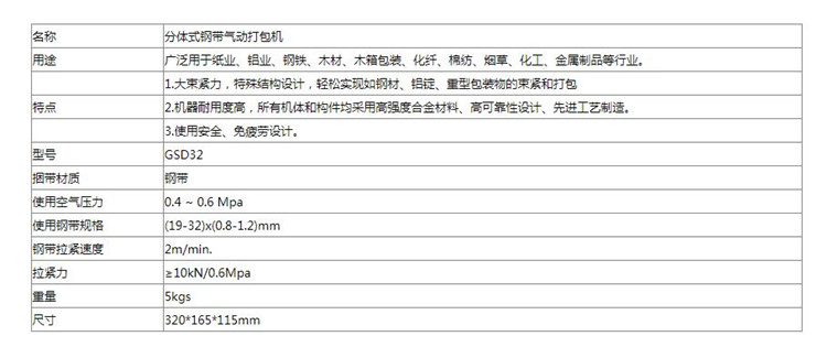 GSD32分体式钢带气动打包机:机器耐用度高,所有机体和