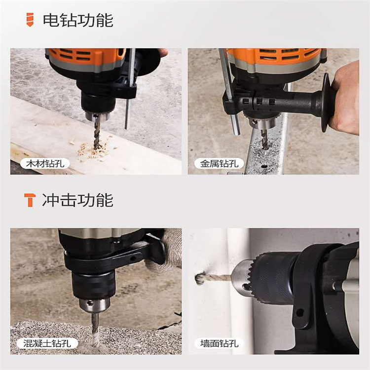 东成冲击电钻高品质钻机头,同心度高,经久耐用