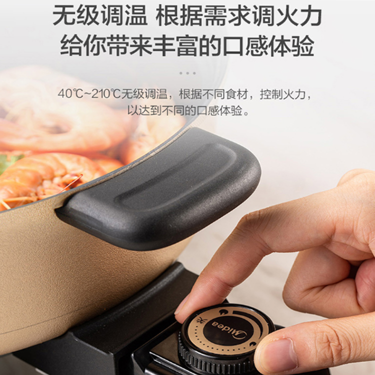 美的(Midea)多用途电火锅无极调温,根据需求调火力。