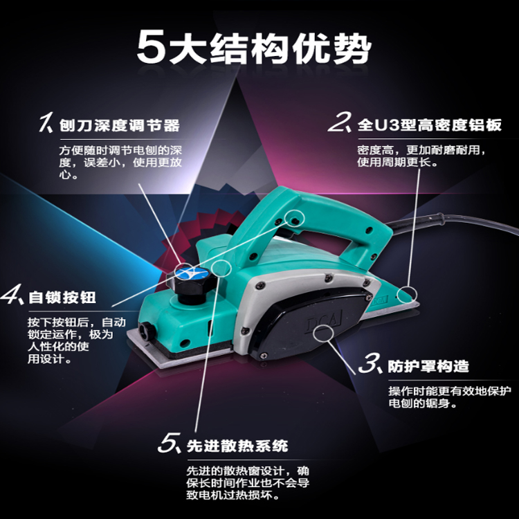 DCA电刨M1B-FF03-82X1刨深自由调节 可调深度0-2mm,刨切深度一手掌握