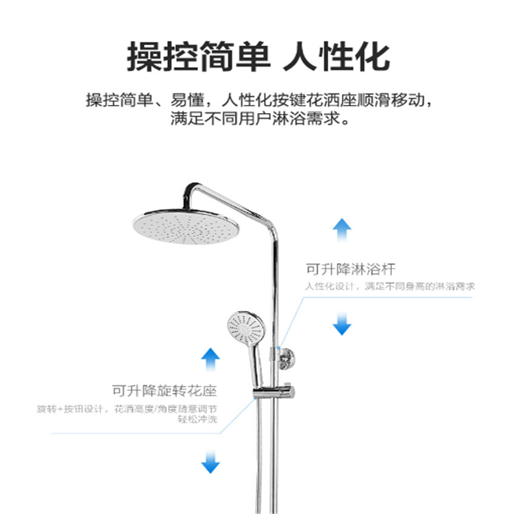人性化按键花洒座顺滑移动,满足不同用户淋浴需求。