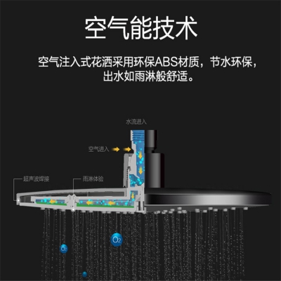 硅胶手持增压易洁淋浴花洒空气能技术空气注入式花洒采用环保ABS材质,