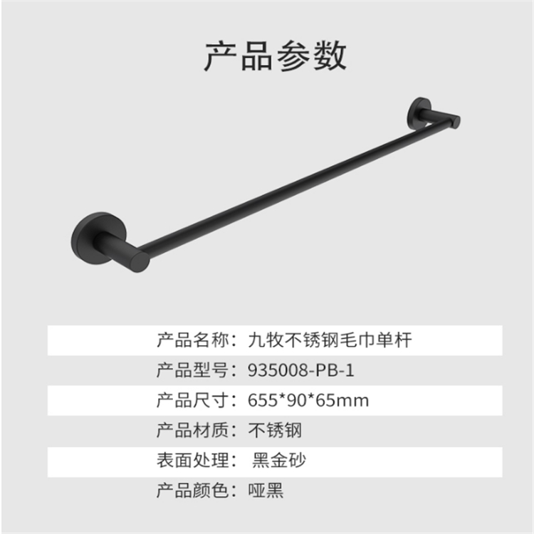 优质不锈钢哑黑色毛巾架甄选优质铝合金打造挂件,防水耐磨不易锈蚀,