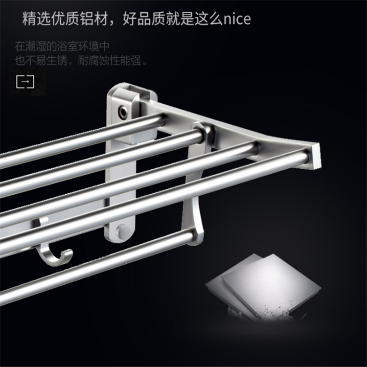 太空铝可折叠活动浴巾架甄选优质铝合金打造挂件,防水耐磨不易锈蚀,