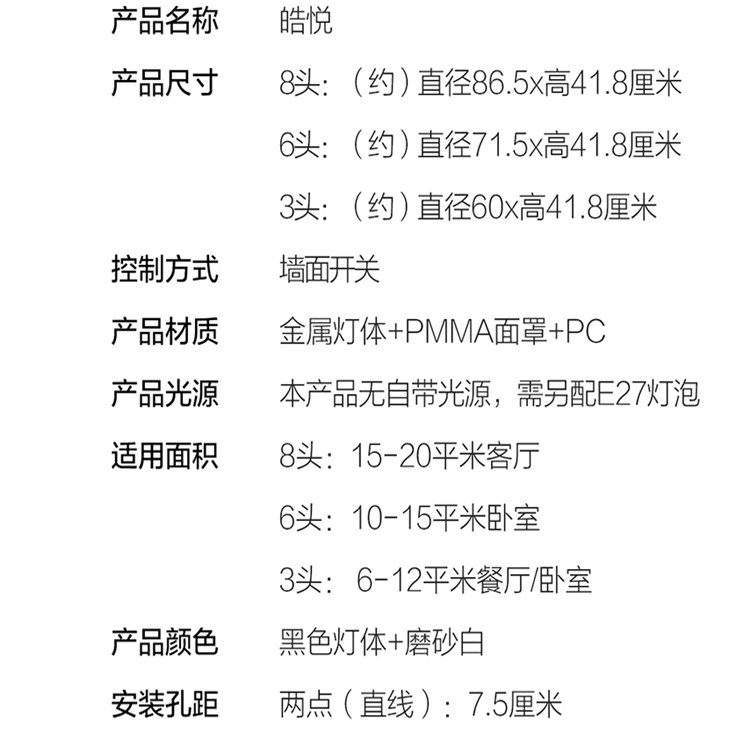 - 型号名称[3头卧室/餐厅灯】【含5瓦暖白光光源】
