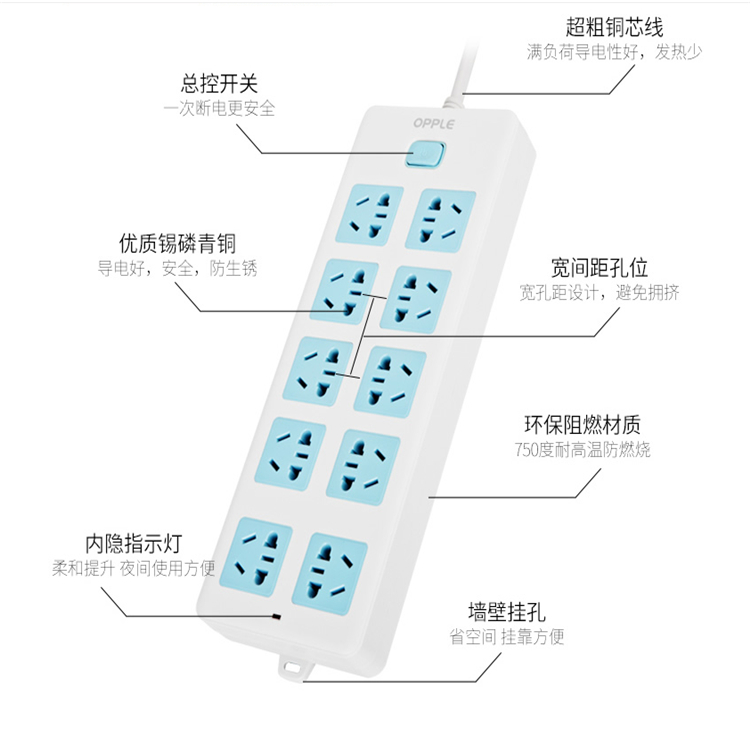 - opple 插排 排插 拖线板 骑士系列  - 用电安全从真材实料开始我们使用优质易磷青铜, - 作为内部重要的导电结构材料  - 具有弹性好,导电性强, - 而磨提外寺性在工艺上,我们不惜成本,从一个个零件做起  - 高档材质耐用锡磷青铜优质锡磷青铜,弹性好, - 导电性强耐磨损防变形以防造成虚接发热着火的安全风险