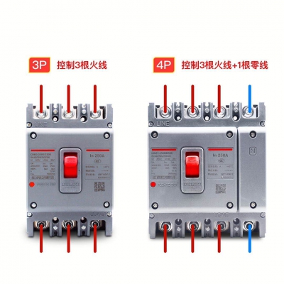 德力西CDM3E电子式塑壳断路器塑料外壳式空气开关3相4线3P断路器