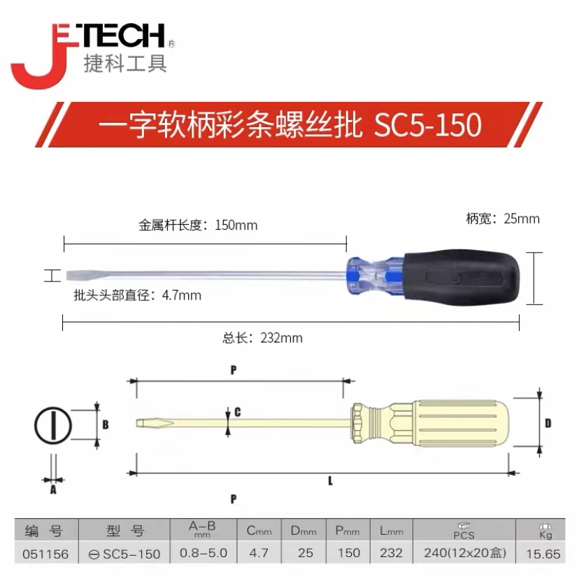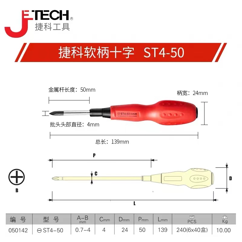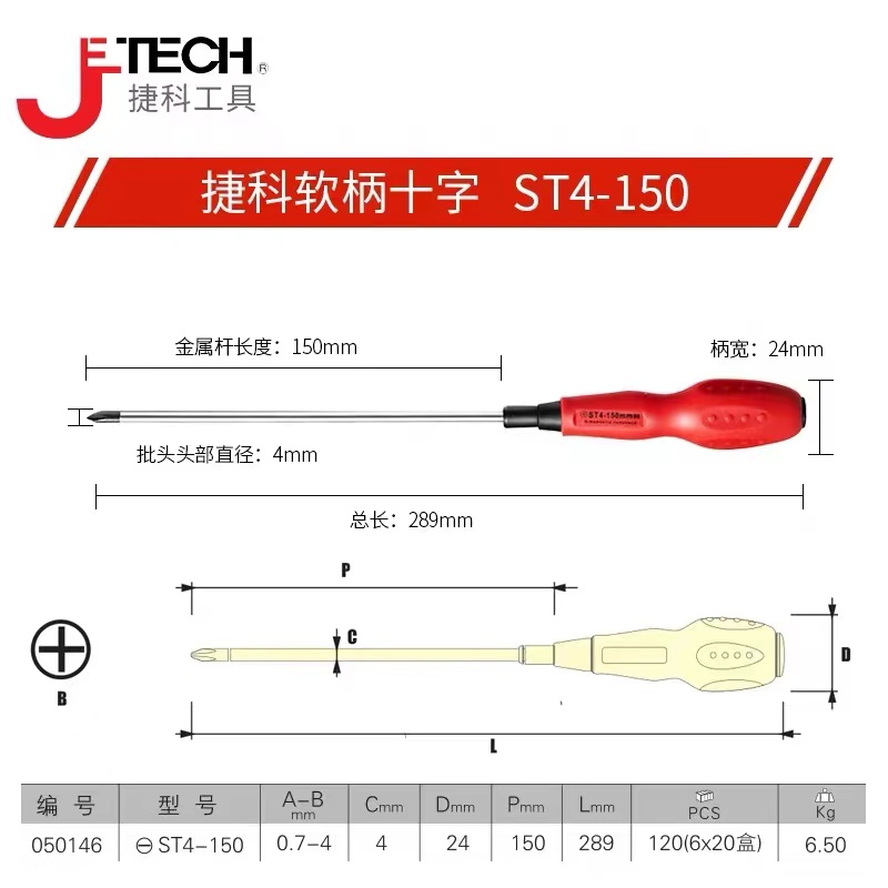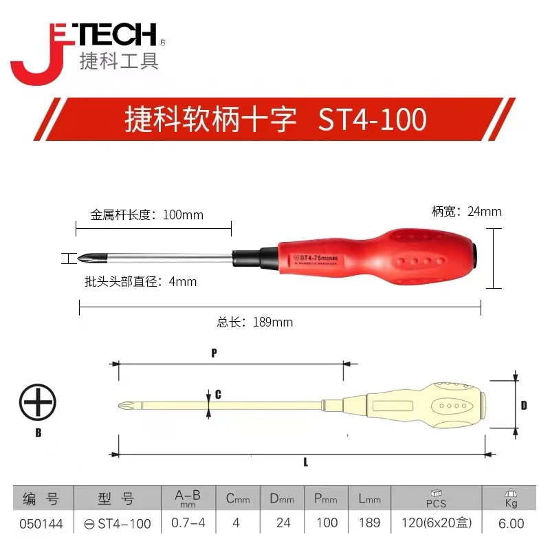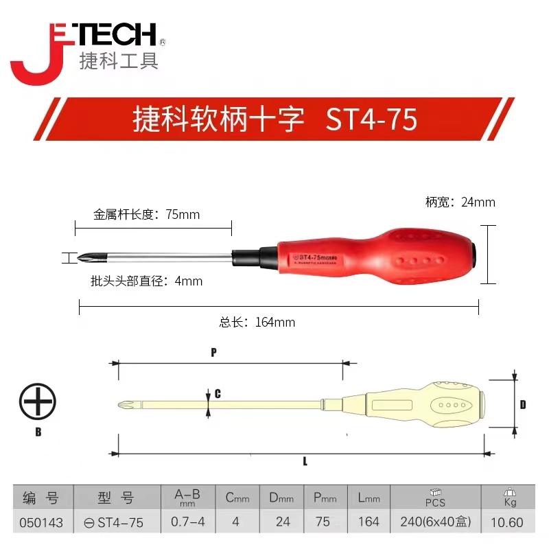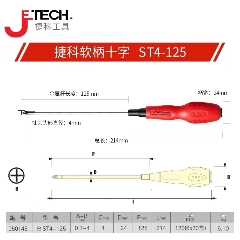 Jetech捷科螺丝刀十字软柄螺丝批改锥起子小批头强磁铬钒钢ST+洪大五金机电