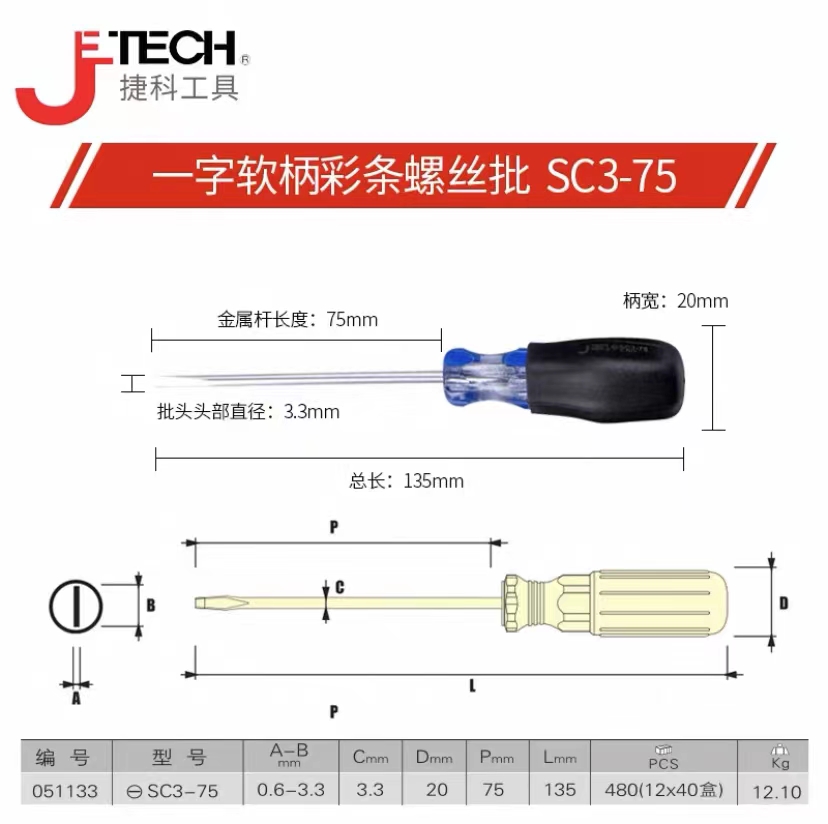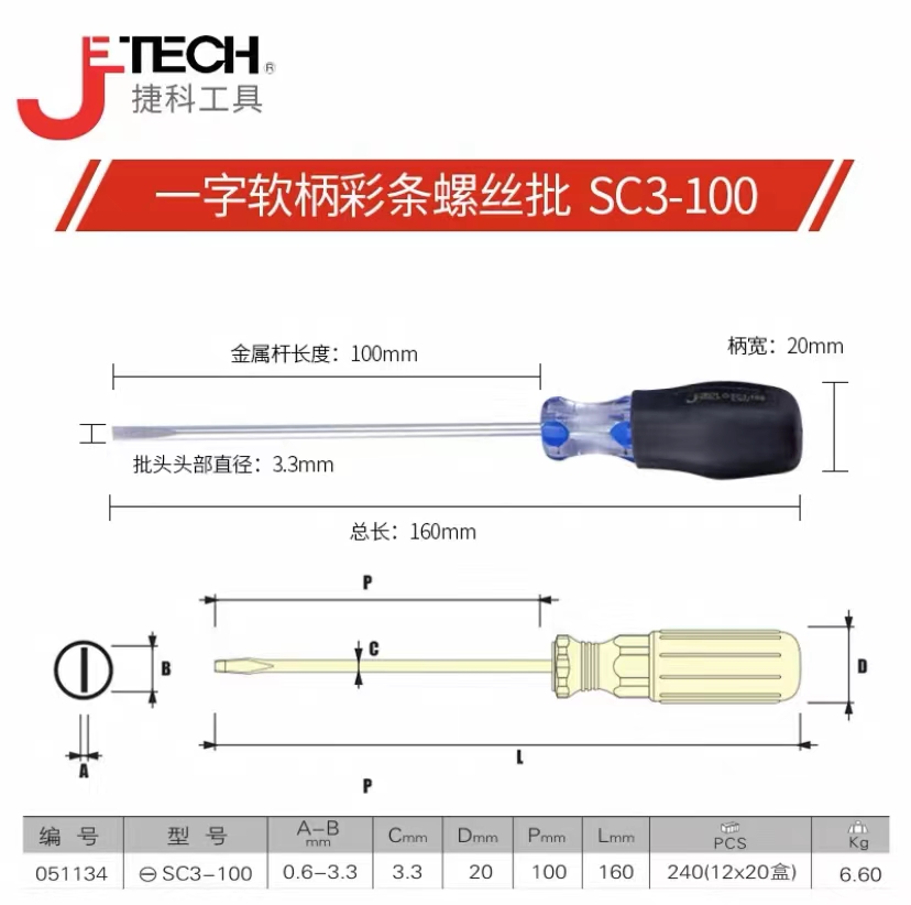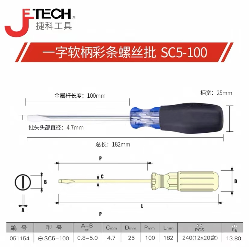 捷科螺丝刀一字软柄起子多功能小改锥带磁维修工具SC-洪大五金机电