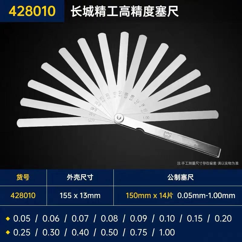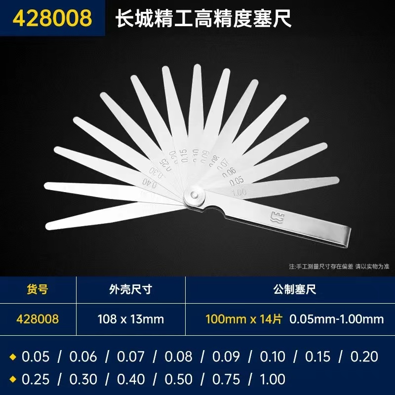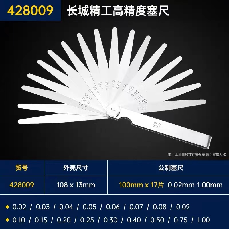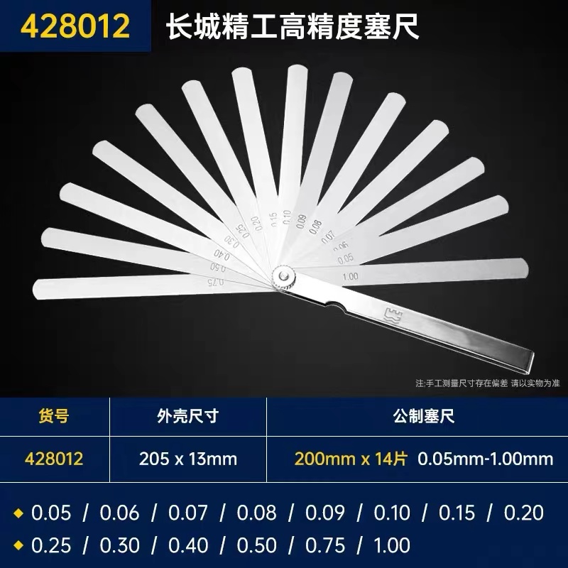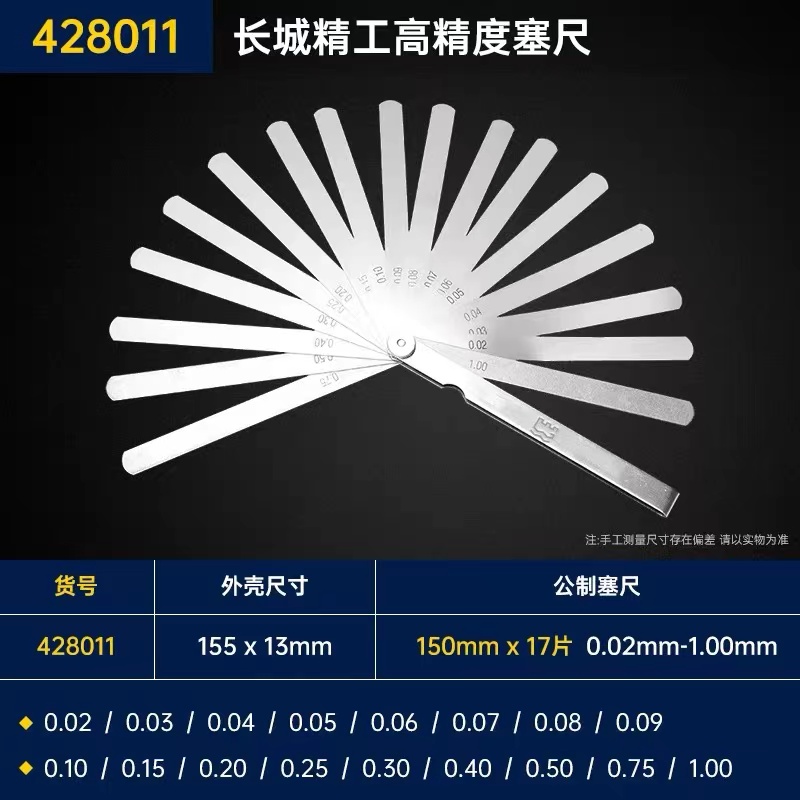 长城精工塞尺筛尺不锈弹簧钢高精度17片0.02-1.0mm200间隙尺塞片洪大五金机电