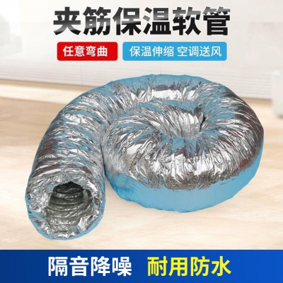 加棉铝箔保温管中央空调保温通风管道夹筋玻纤布加厚伸缩钢丝软管