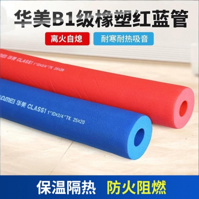 华美B1级彩色橡塑保温管空调铜管防冻耐候保温棉地暖红蓝保温管套