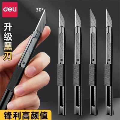 得力黑刃美工刀钨钢黑科技小型裁纸刀拆快递小刀壁纸刀不锈钢刀身