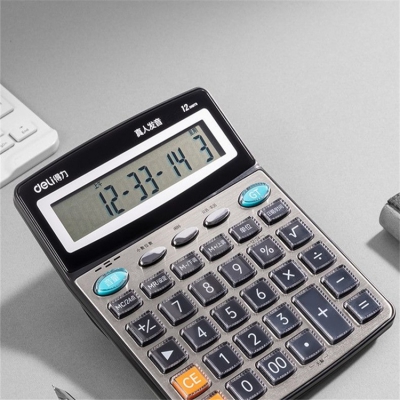 得力计算器会计财务专用双电源语音款多功能计算机器