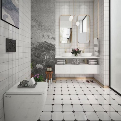 遥绾惜北欧黑白花砖300x300厨房卫生间浴室 阳台餐厅防滑覆古艺术小花砖